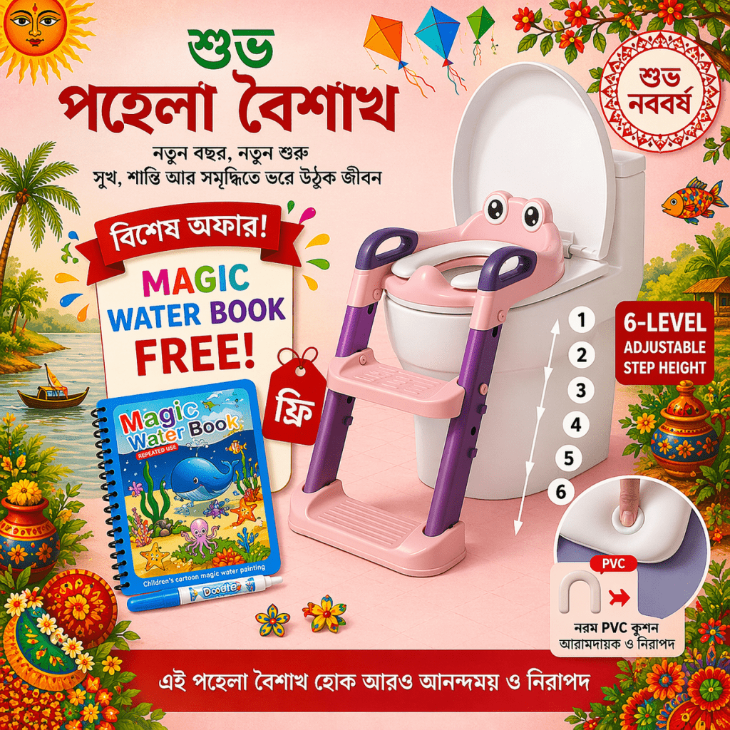 Baby Potty Seat with Ladder-(Frog)–PINK